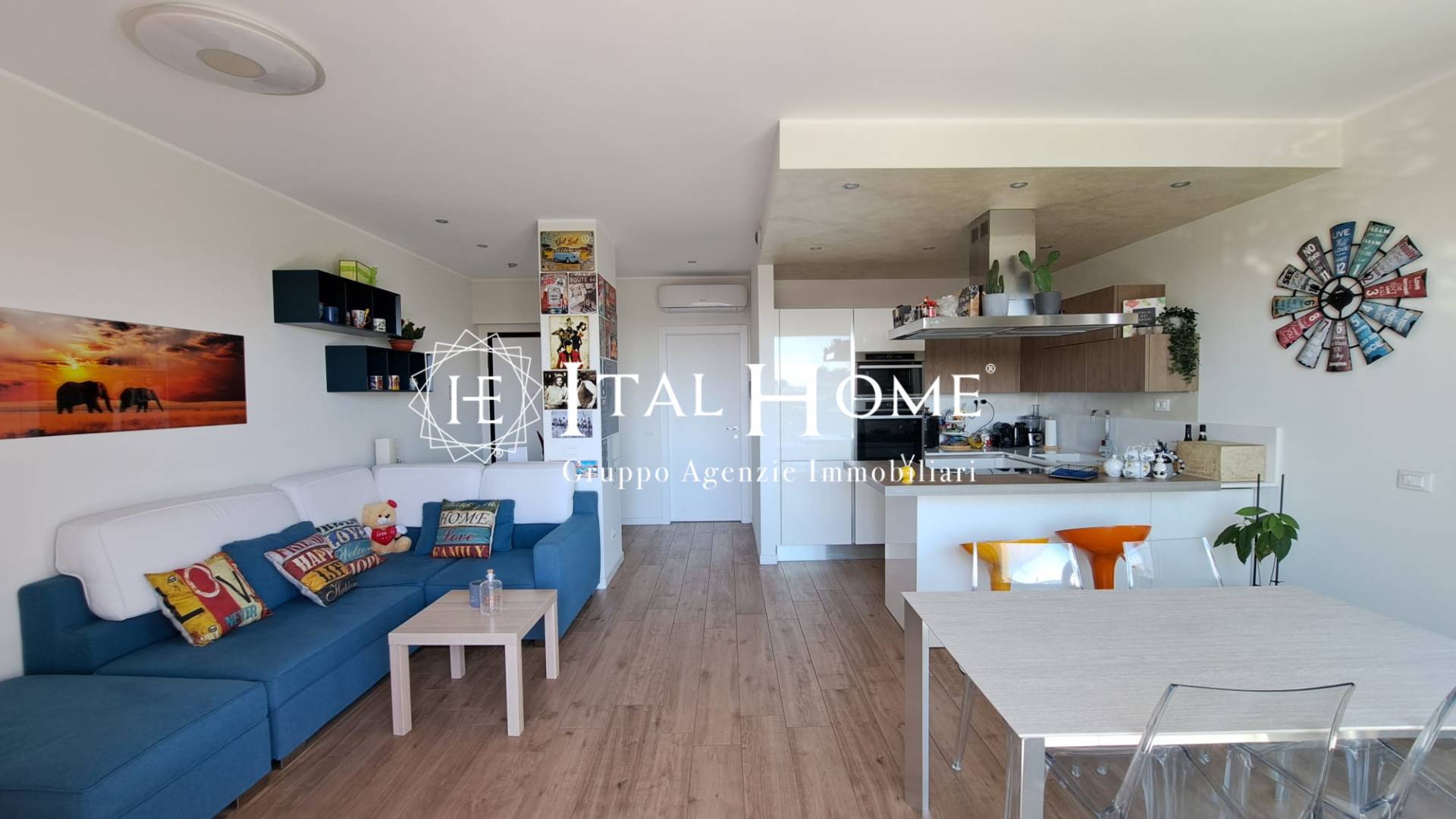 Parliamo di un ampio bilocale caratterizzato dalla perfetta unione di comfort e design in spazi che si dimostrano adatti a soddisfare al meglio le esigenze della vita quotidiana: entrando veniamo accolti dall'ingresso aperto sull'elegante soggiorno comprensivo di belissima cucina a vista con penisola, ideale per organizzare cene/apertivi con gli amici, per poi proseguire verso la comfortevole camera da letto, provvista di esclusiva cabina armadio su misura, e trovando infine il raffinato bagno completo finestrato.