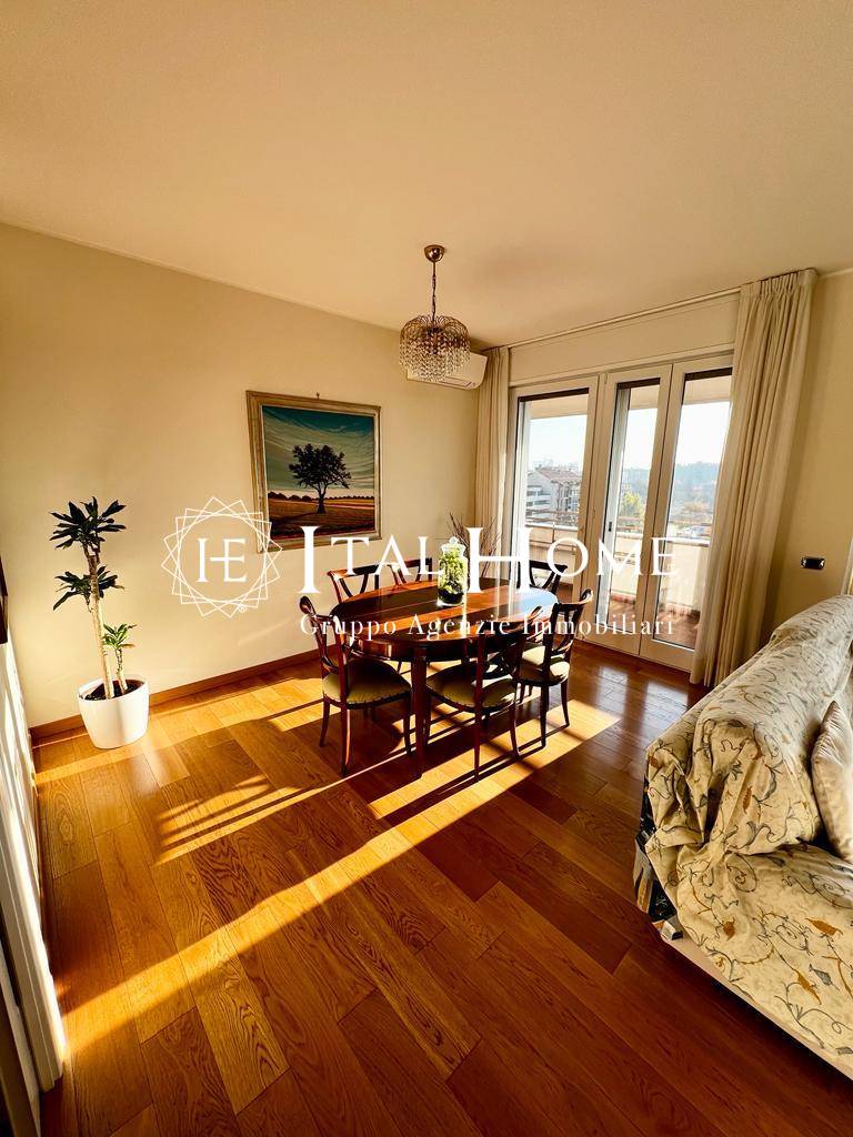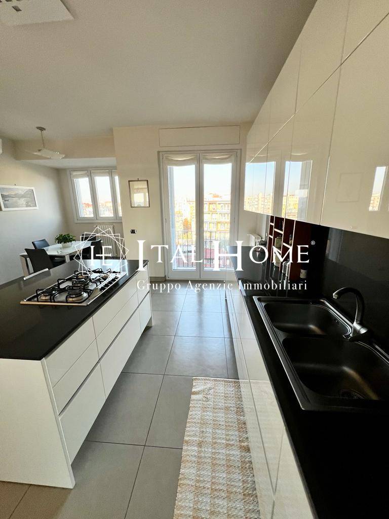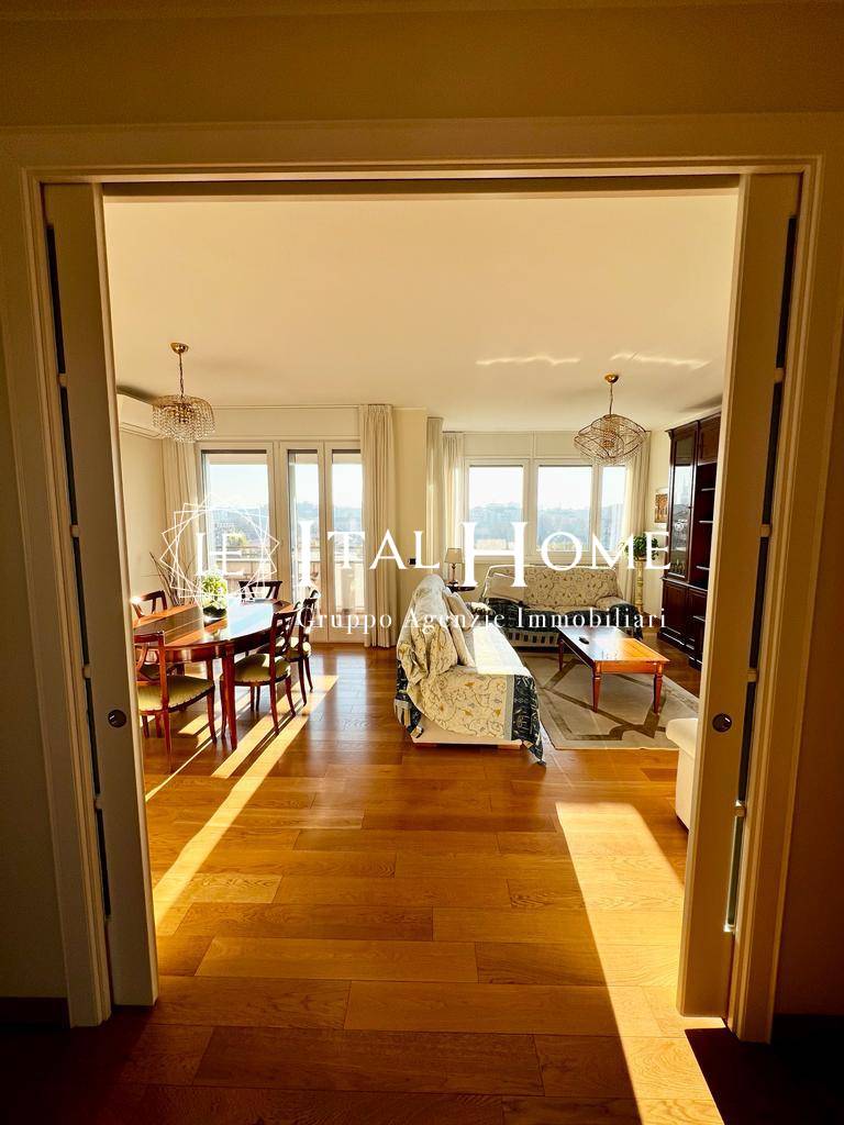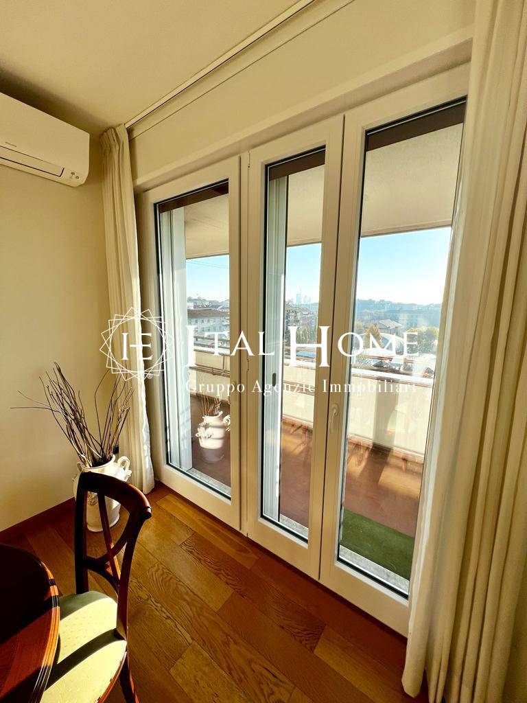 Entrando si viene accolti dall'elegante soggiorno affacciato sull'ampio balcone da cui godere di una vista mozzafiato sul panorama milanese; successivamente troviamo la cucina abitabile, estremamente funzionale, due confortevoli camere da letto, e ben tre bagni!