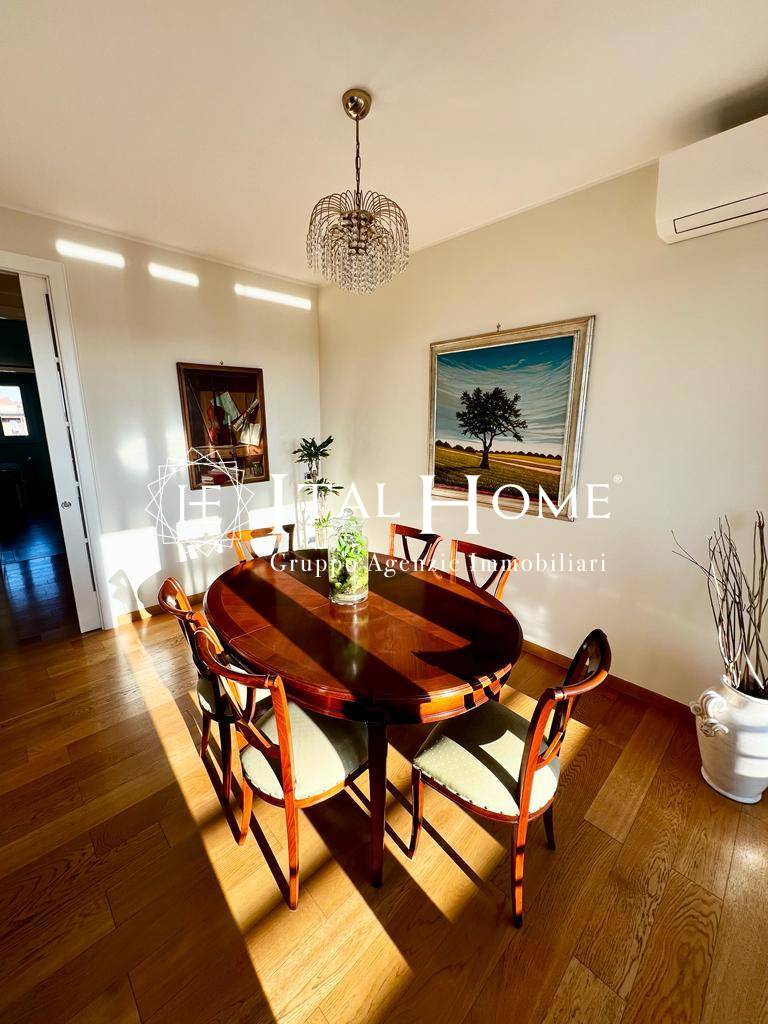 Il tutto risulta estremamente luminoso e silenzioso grazie all'ottimale esposizione sui due lati (Nord-Est e Sud-Ovest) ed alla presenza degli infissi in PVC con doppio vetro, ideali per garantire anche un efficiente isolamento termico.